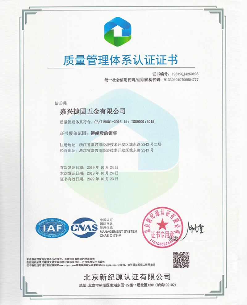 質(zhì)量管理體系認(rèn)證證書